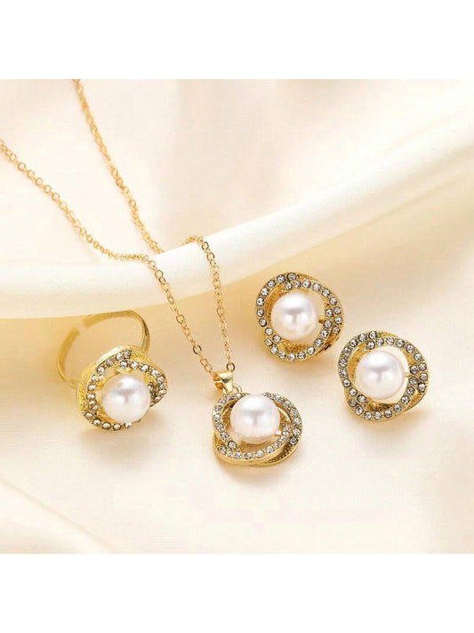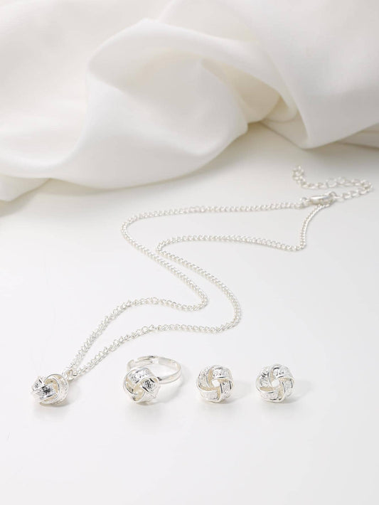 4pcs/set Twist Design Jewelry Set Simple Geometric Metal Necklace Stud Earrings Ring Set