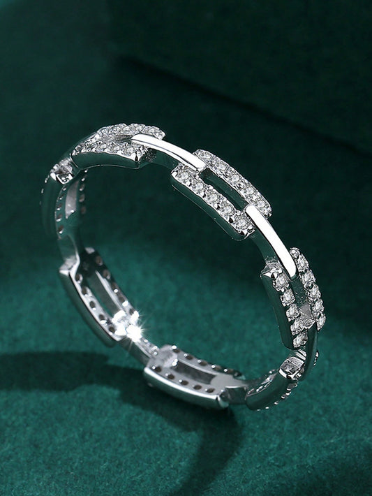 925 Sterling Silver Rhinestone Inlaid Chain Design Women's Finger Ring, European And American Style, Network Celebrity Jewelry
