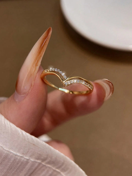 1pc V-Shaped Cubic Zirconia Ring With 18K Gold Plating And Cubic Zirconia Jewelry Gift For Women, Mother, Wife, Girls, Birthday Gift