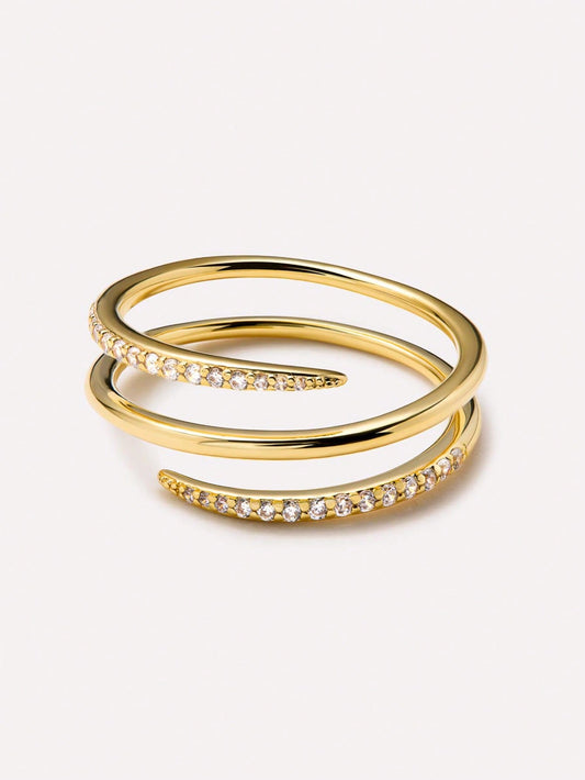 Light Luxury Prom Jewelry 925 Sterling Silver Spiral Shape Inlaid Zirconia Gold Plated Adjustable Rings For Women Daily Wear
