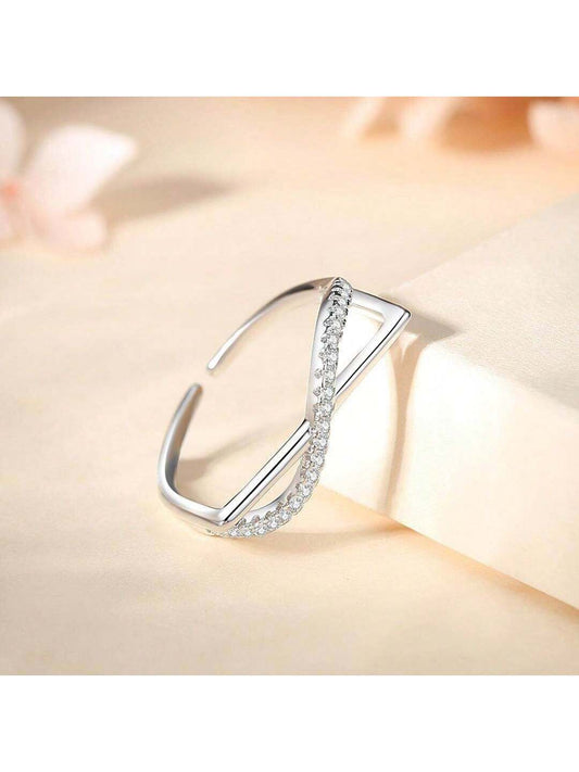Esberry 1pc S925 Sterling Silver V-Shaped Engagement Ring Wedding Band For Women Promise Ring Eternity Ring Fine Jewelry Gift