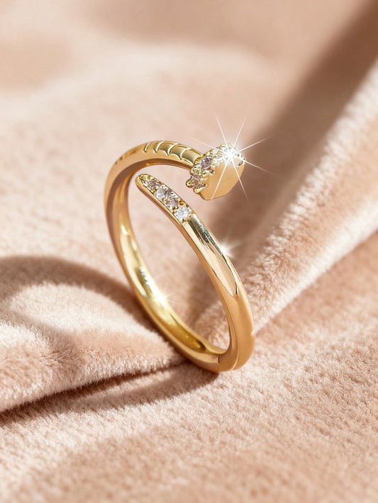 2026 New Adjustable Gold Ring With Zirconia Stone, Suitable For Men And Women, Ideal As Party And Holiday Gift, Luxury Jewelry Choice For Couples And Wives, Christmas And New Year Gift
