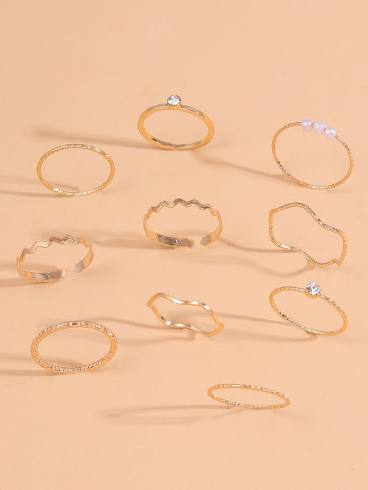 10pcs Rhinestone & Faux Pearl Decor Ring